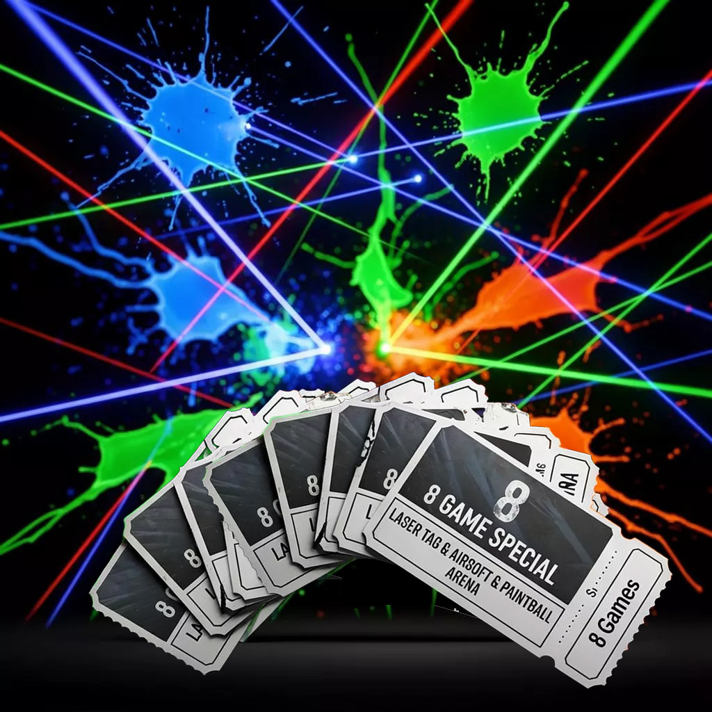 Tickets can be used on any activity. Players can choose between Laser-Tag, Airsoft, and Paintball with each ticket. New games start every 15 minutes.